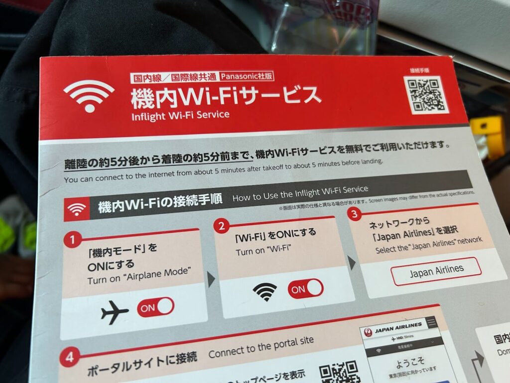 JALでは便によっては、機内に液晶パネルやWi-Fiが付いてない便もあります。