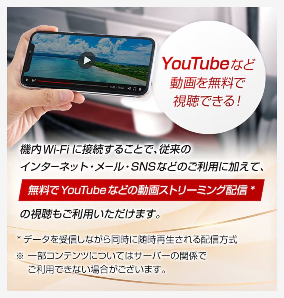 確か、出始めの頃は機内Wi-FiではYouTubeなどの動画サービスは観れなかったと記憶しています。