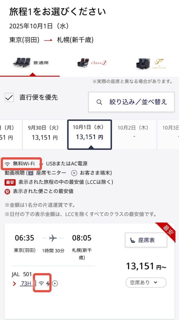 それと「最後の砦」YouTube対応の為に無料Wi-Fiが付いてる便かも確認しておきましょう。